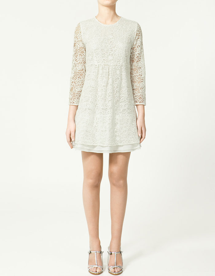 Je cherchais vaguement une tenue à mettre pour les 2 ans du petit truc quand je suis tombée sur une très belle robe blanche brodée avec les manches transparentes chez Zara.