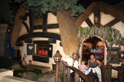 L’entrée a été un peu dure, trop de choses à voir d’un coup et le truc s’est roulé par terre pendant la première 1/2 heure , nous faisant craindre le pire … On a donc commencé par les ( nombreuses) boutiques , on lui a acheté un jouet ( qu’elle ne réclamait pas ), et après elle était de très bonne humeur avec son petit sac en forme de coeur sous le bras .Et un seul jouet a suffi pour toute la journée . ( Bon c’est vrai qu’il y a beaucoup de boutiques pleines de choses inutiles et chères mais c’est beaucoup moins grave que la qualité déplorable de la nourriture hors de prix servie dans leurs restaurants …)