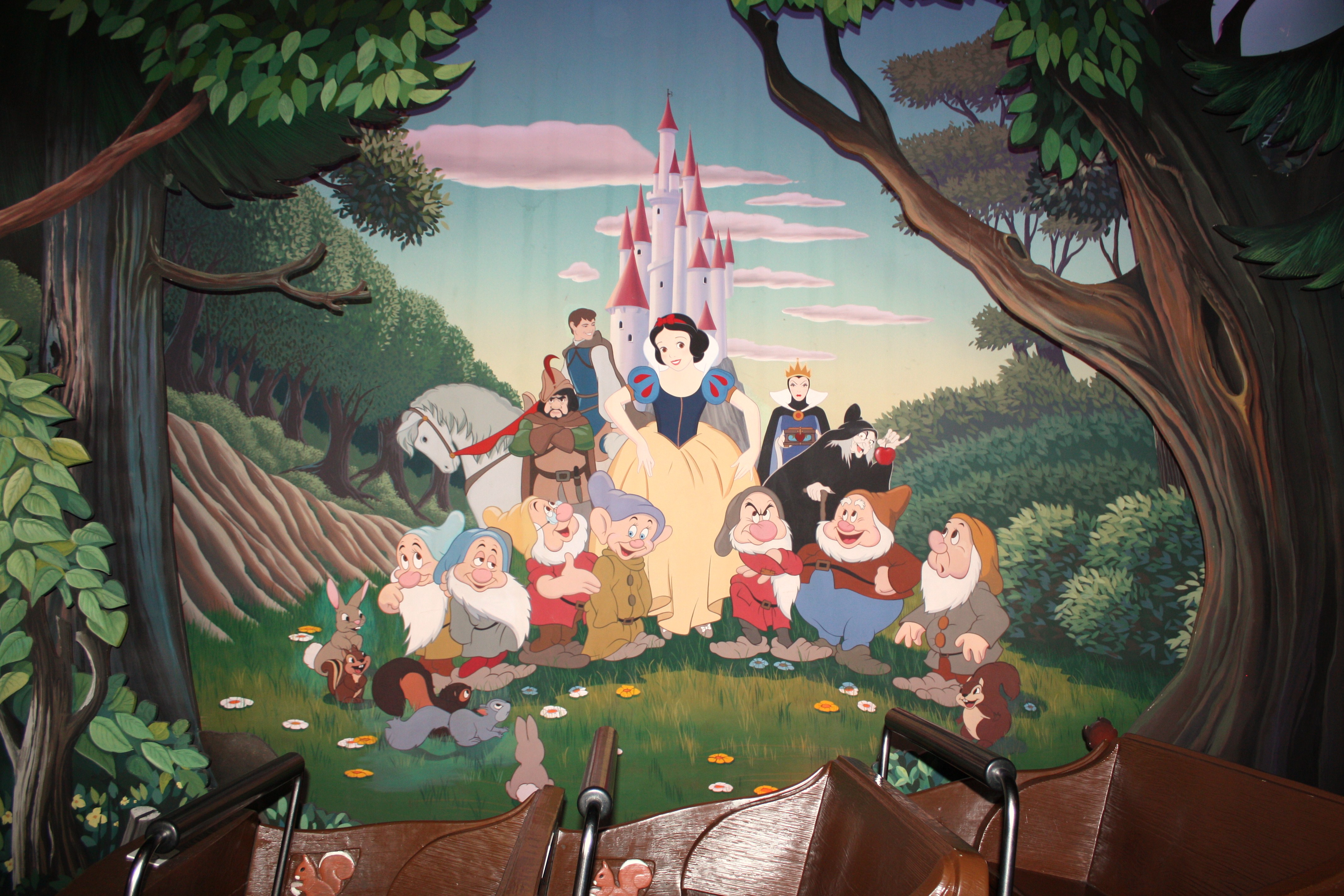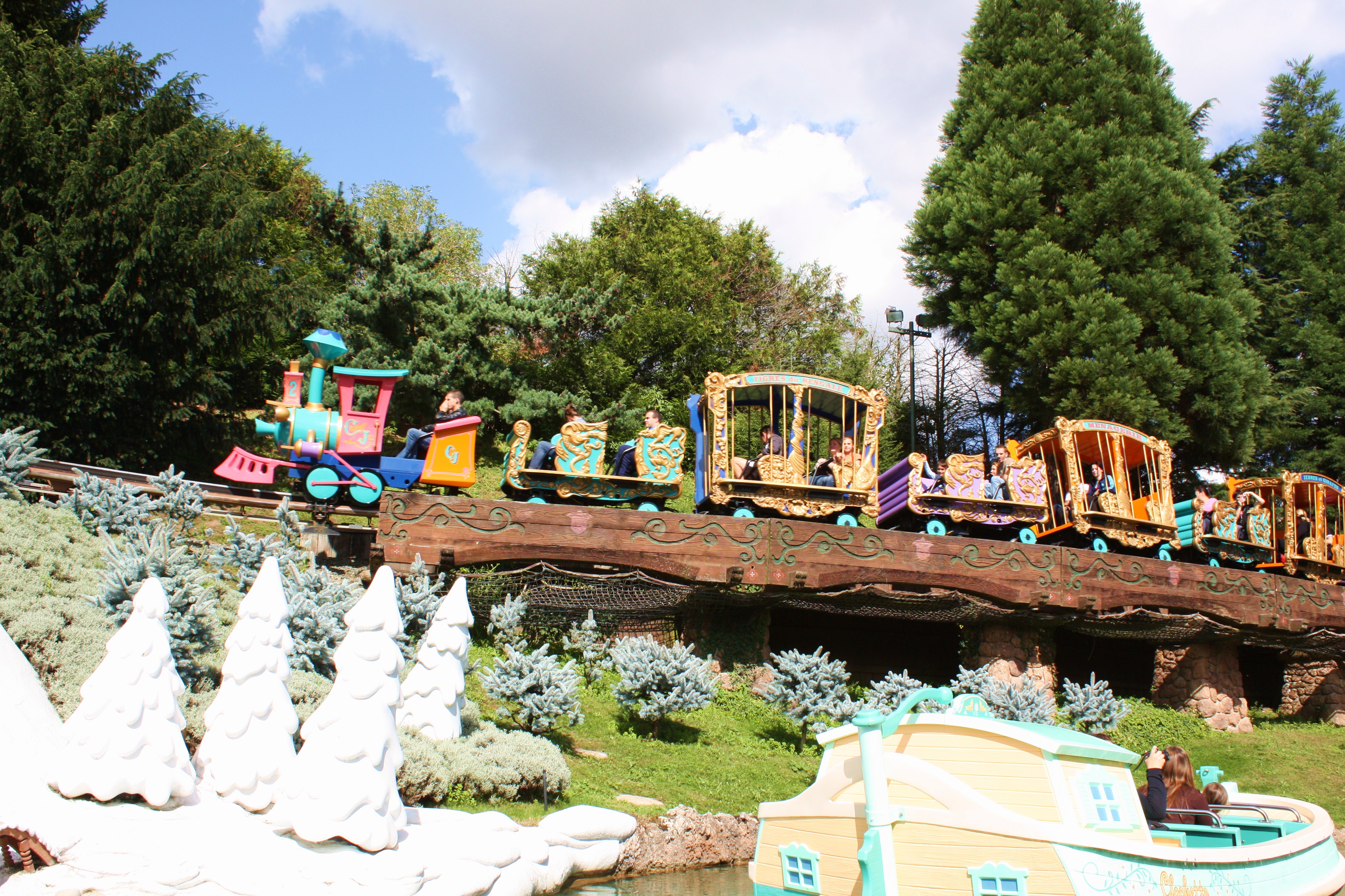 Puis nous avons fait le pays des contes de fées. On est installé dans des petits bateaux et on traverse les décors des contes les plus célèbres