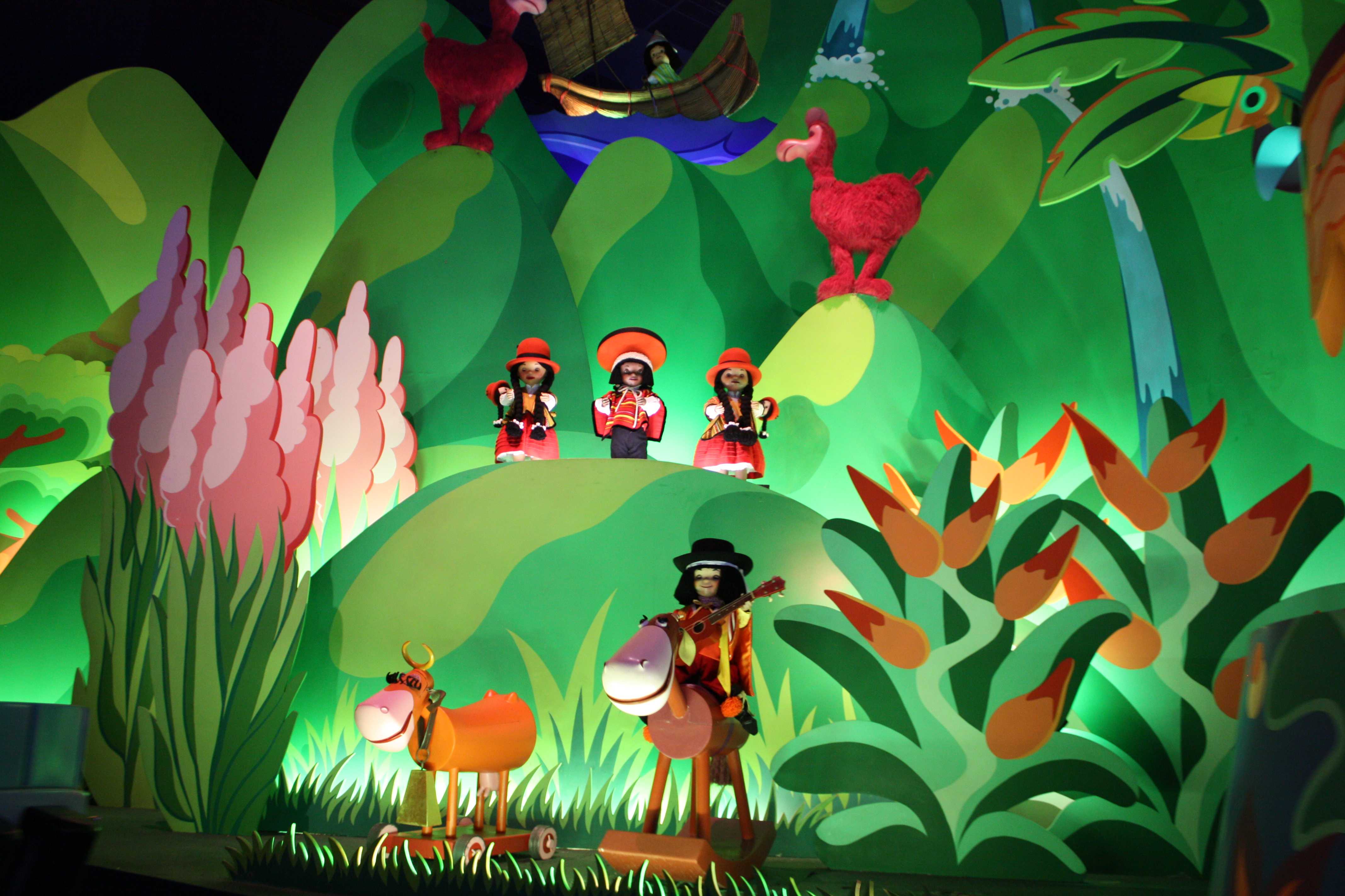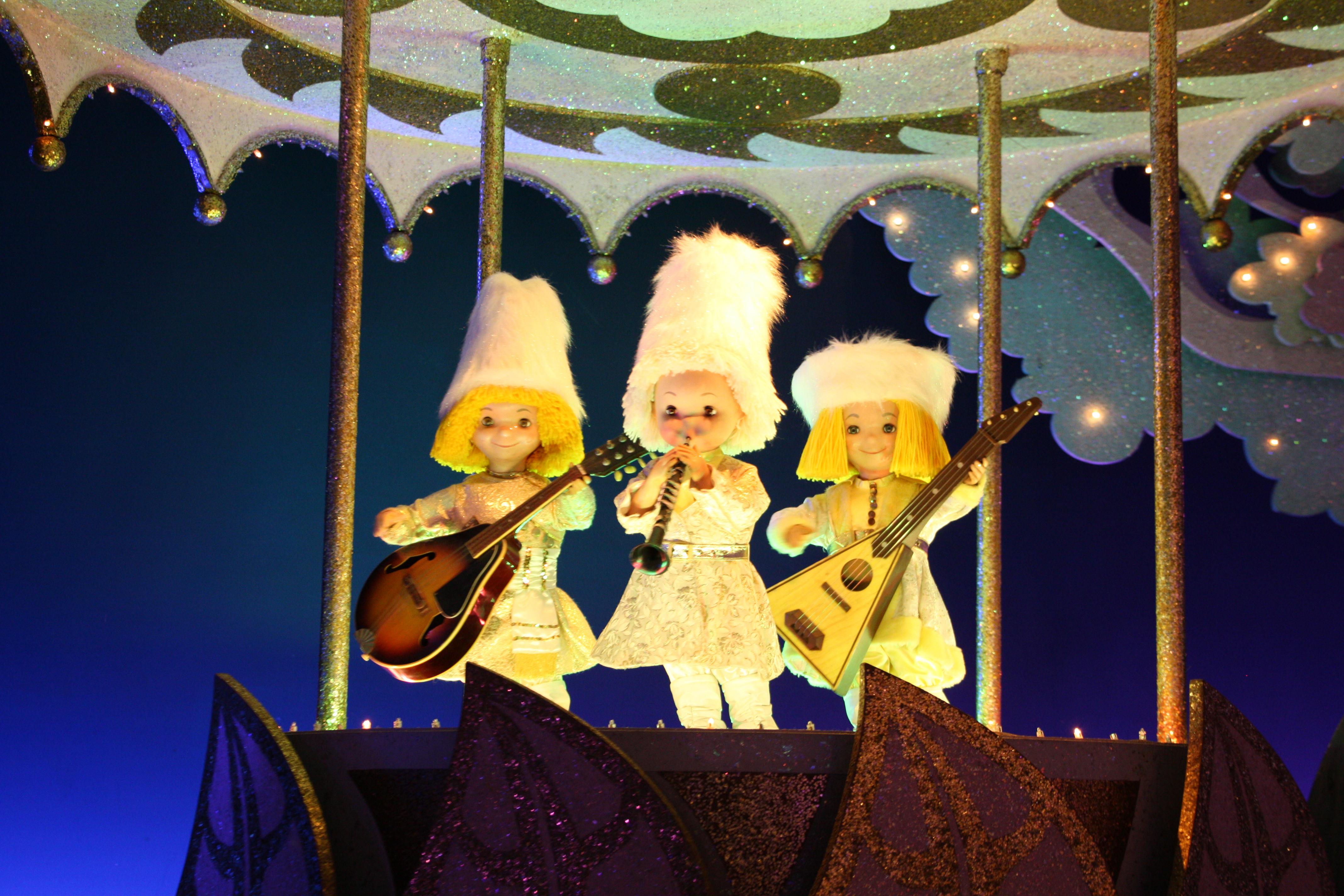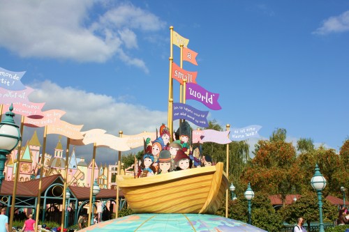 Puis nous avons fait le monde des Poupées et c’est l’attraction que j’ai préférée : on navigue dans des petits bateaux, et en chanson ( !!!) , on passe dans tous les pays du monde représentés par des poupées qui dansent :