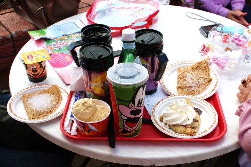 Nous avons goûté près de l’endroit où il y allait avoir la parade de 17 h, on s’est fait refiler d’office le menu avec la crêpe, la boisson et le mug , crêpe pas bonne, ça va sans dire …
