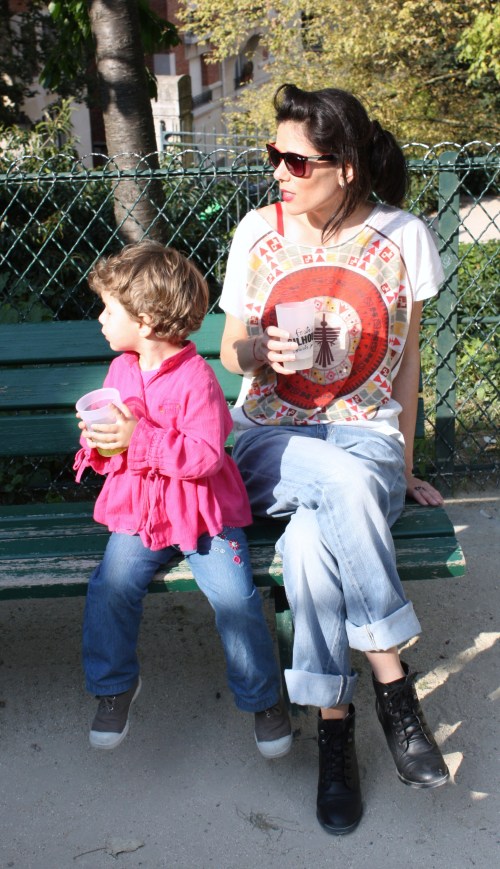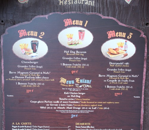 Puis nous avons déjeuné à côté, au Chalet de la Marionnette, que je vous déconseille. Ne prenez surtout pas le menu bavarois comme j’ai fait, la saucisse du hot dog est immangeable ! Les frites sont très moyennes, c’est plus cher que Mac Do et beaucoup moins bon . Enfin, nous étions assis et il faisait beau …
