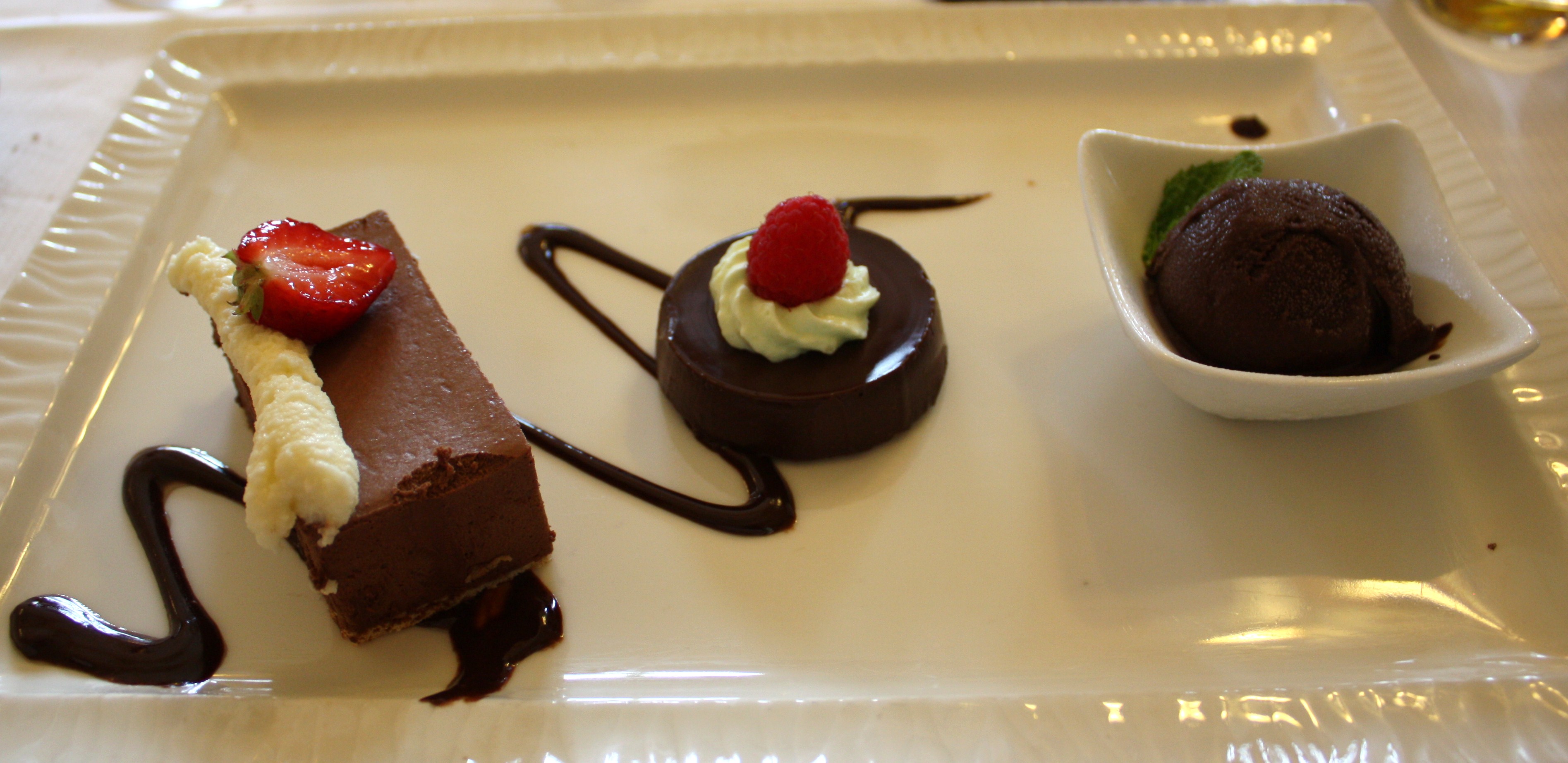 Le dessert : dégustation gourmande de 3 douceurs au chocolat :