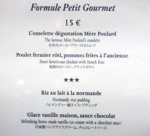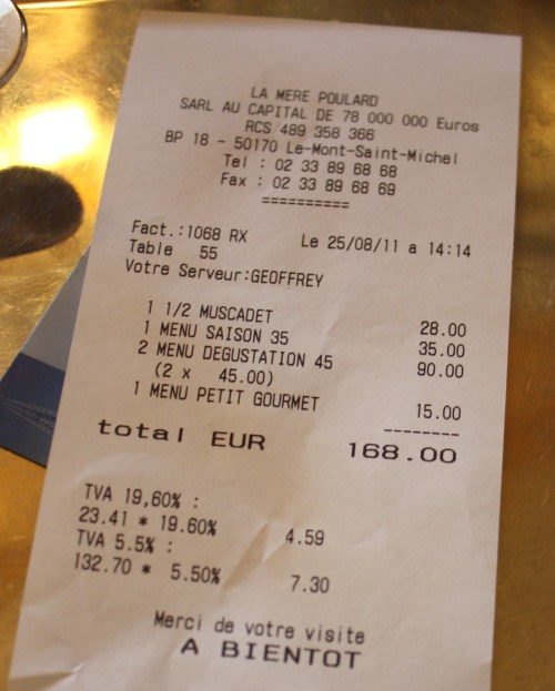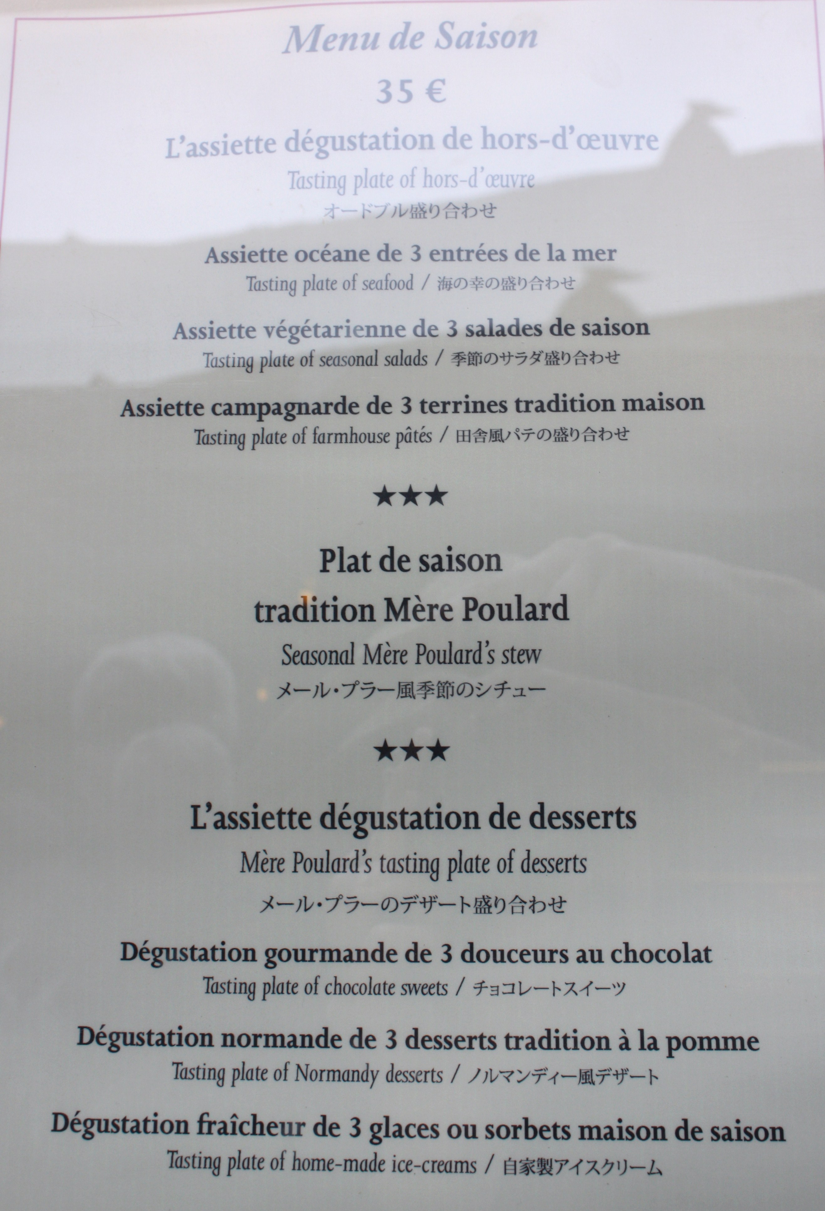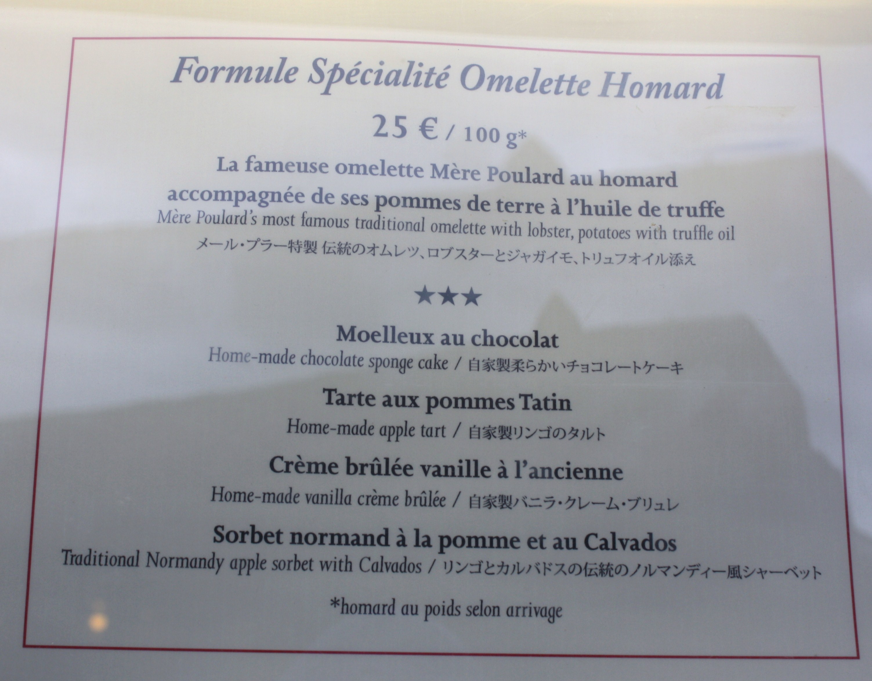 Lors de notre visite au Mont Saint Michel fin août, j’ai saoulé ma mère et Arnaud pour aller manger chez la mère Poulard.