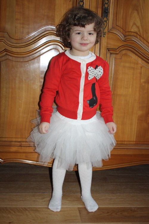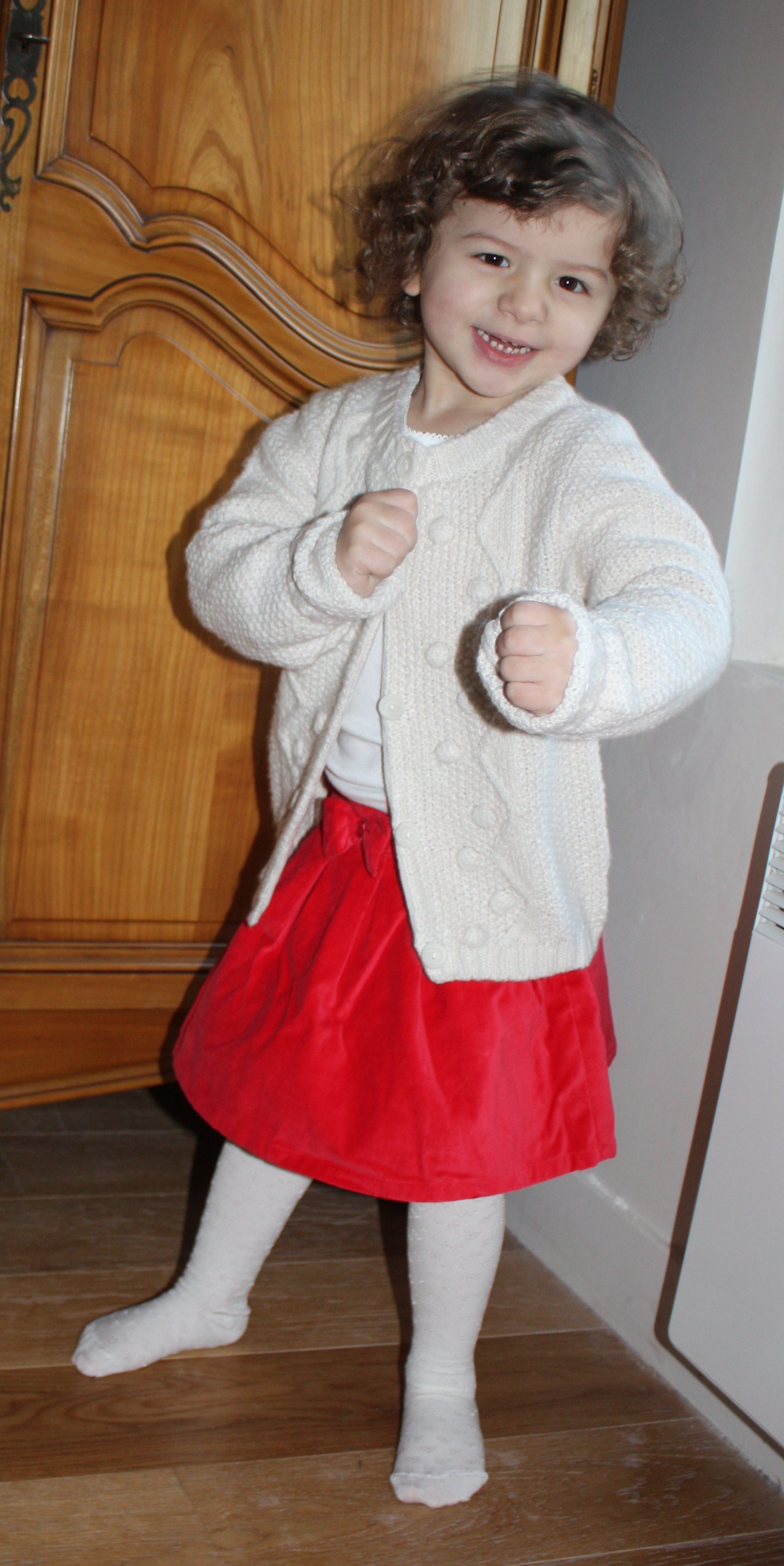 Je la garde au chaud , j’ai bien pensé la gaver de Doliprane et la mettre à la crèche comme si de rien mais elle m’a regardée avec sa petite tête triste Droopyesque. Et puis les bus ne passent pas ce matin . Journée Toy Story sous la couette donc . Ma belle robe attendra des températures plus clémentes …