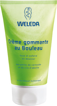 Avant d’appliquer son soin local on peut préparer sa peau avec un gommage corporel pour éliminer les cellules mortes, 2 fois par semaine comme avec la crème gommante au bouleau de Weleda :