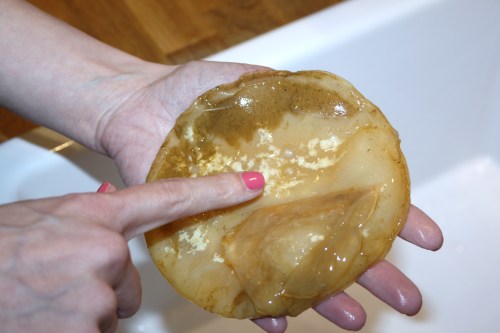 La petite a profité de notre totale inattention ( nous sommes des parents égoïstes et méchants , je vous le rappelle ) pour aller faire caca toute seule . Elle a fait à côté ( ?! ) a marché pieds nus dedans et s’est promenée partout dans la maison avant qu’on s’en apercoive 😉
