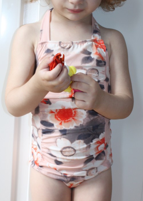 Et puis nous n’avons pas trouvé de jolis maillots de bain pour nous 2 .