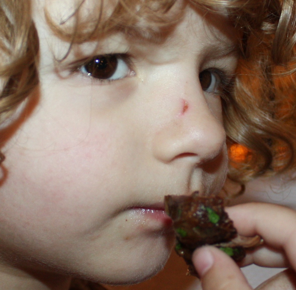 PS : bien sûr je l’ai surveillée 24heures comme elle est aussi tombée sur la tête .Elle a dormi avec nous 😉