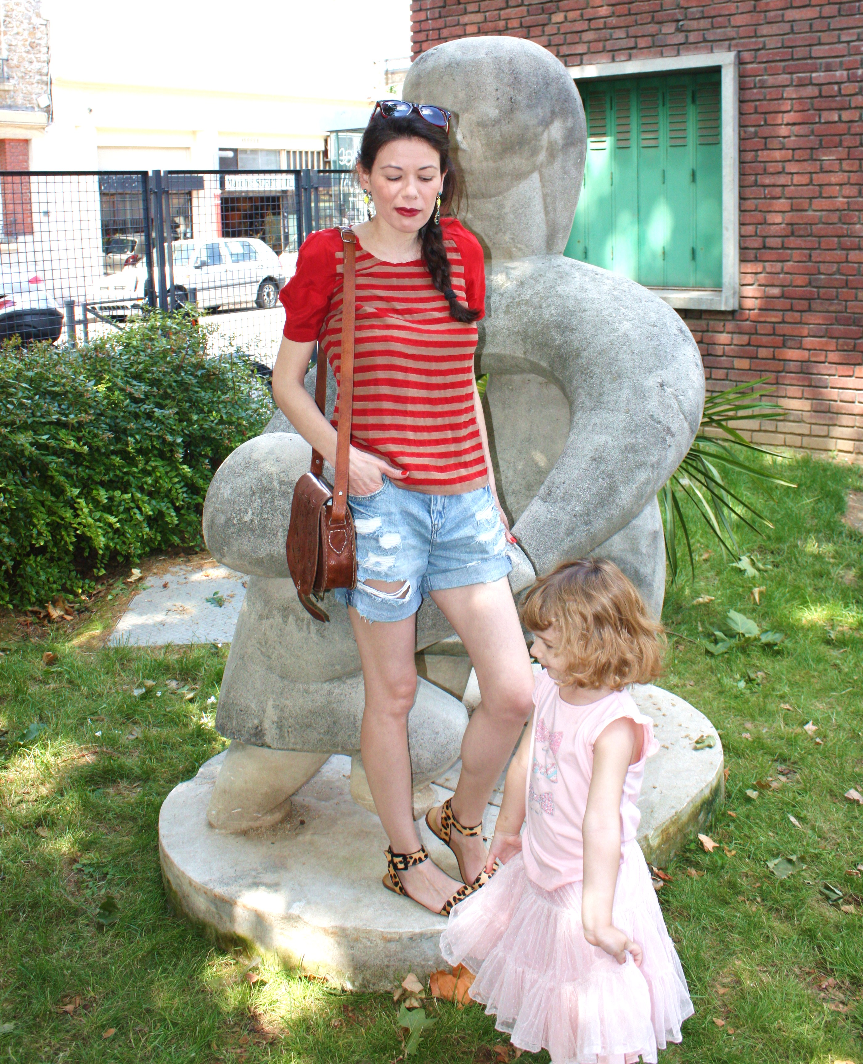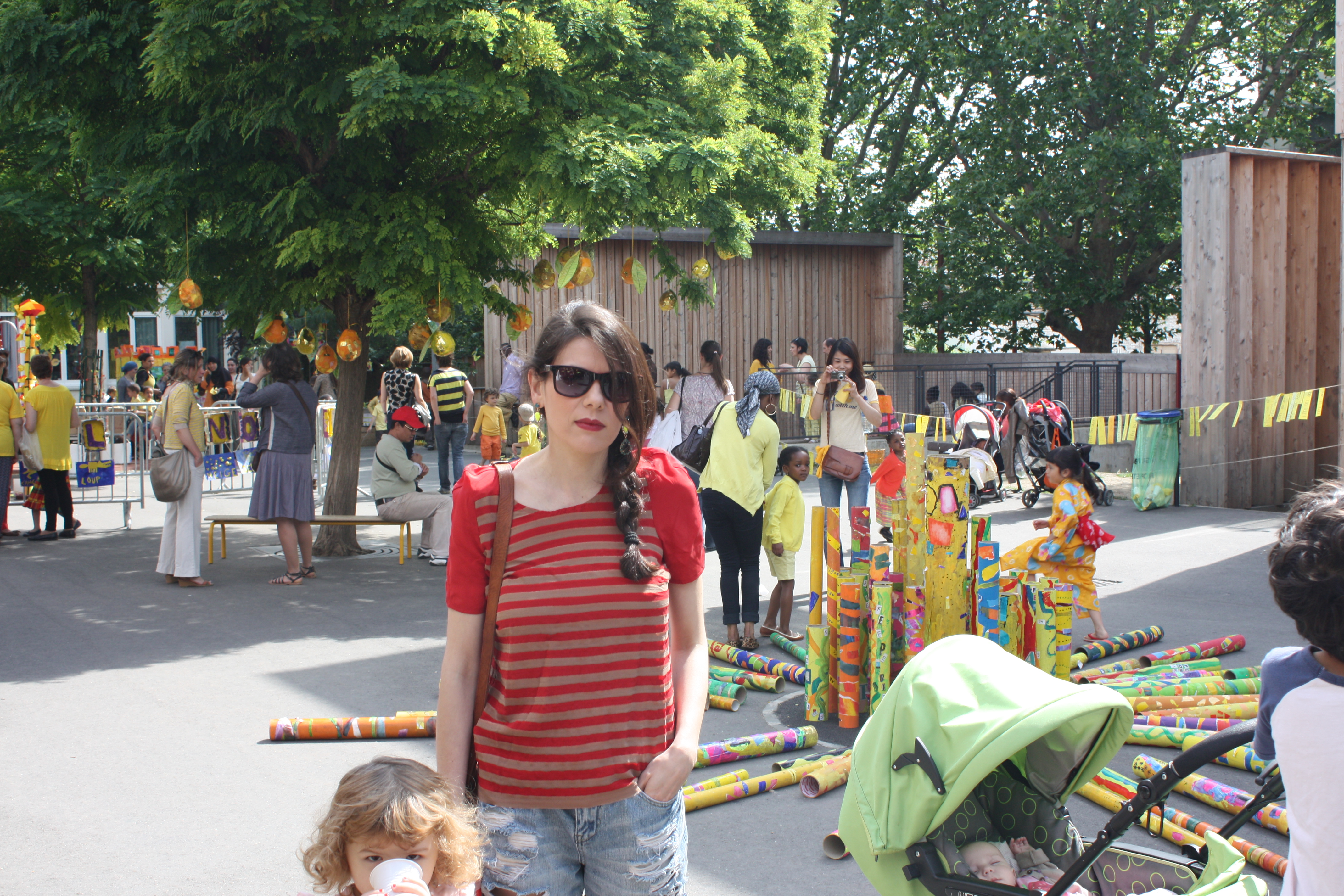 Ici en situation lors de la fête de la future école d’Ava . ( J’avais mis une robe longue à fleurs un peu fade et sage, je me suis changée au dernier moment pour quelque chose de plus rock n roll . )