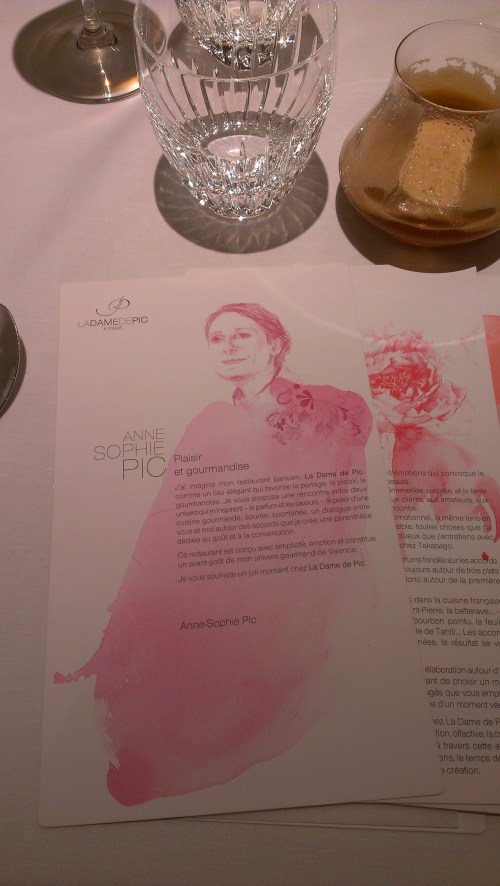 Nous avons donc fêté mon anniversaire, en amoureux , et pour l’occasion nous sommes allés au 20 rue du Louvre dans un restaurant qui a ouvert il n’y a pas très longtemps : La Dame de Pic .