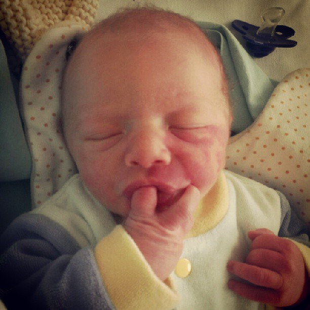 Cette tache a un peu gâché l’euphorie de sa naissance et à posteriori je le regrette beaucoup . J’ai beaucoup moins de photos de lui que de sa soeur et je l’ai presque toujours pris de profil 😦 C’est dommage . D’ailleurs à l’heure actuelle je n’ai toujours pas fait son faire part de naissance …