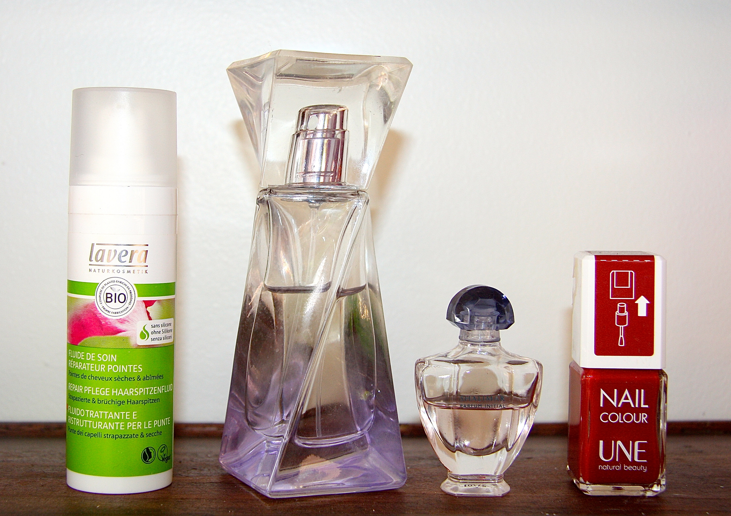 mais je mets quand même en prévention un sérum sur mes pointes , ici le fluide bio soin réparateur pointes sèches et abîmées de Lavera , sans silicone, à la rose et à la kératine végétale . Verdict à la fin de l’été .
