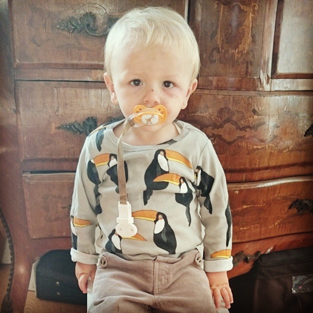 J’adore ce t-shirt toucan , Alistair l’a énormément mis et le met encore . Malgré tous les lavages il est toujours en très bon état .Avec son petit Levi’s c’est la tenue que je vais garder en souvenir ( je vendrai malheureusement tout le reste faute de place ) .