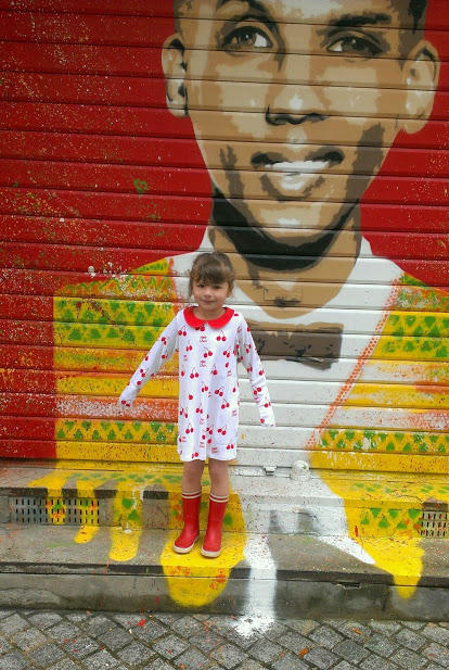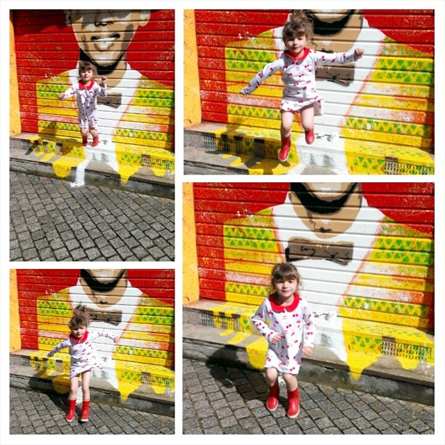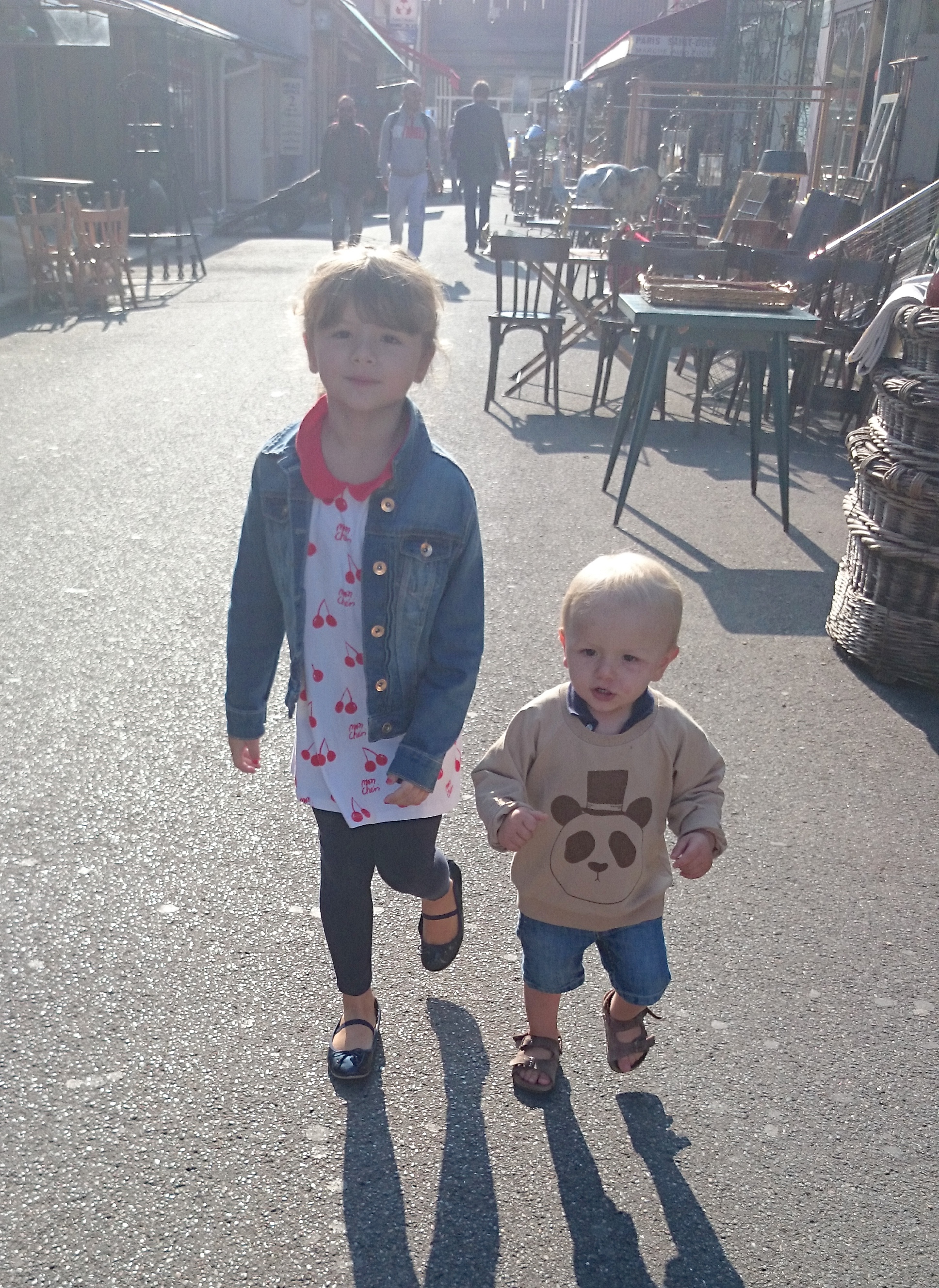 Ici aux Puces en bas de chez nous , Ava porte aussi une robe / tunique Mini Rodini