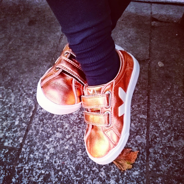 - Veja , la marque que je connais le mieux en matière de chaussures bio / éthiques . Ava en a quelques paires , elle a même la chance de tester quelques modèles en exclusivité , et bien ce sont ses tennis préférées ! Facile à mettre grâce au velcro , bien résistantes et belles !