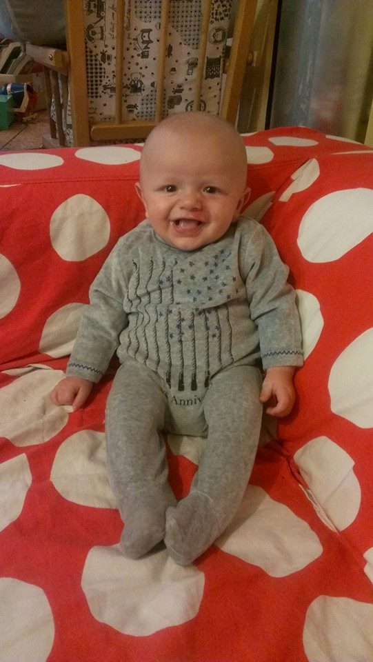 Alistair à 4 mois 1/2 , la veille de la première séance , l’angiome s’est déjà bien éclairci par rapport à sa naissance