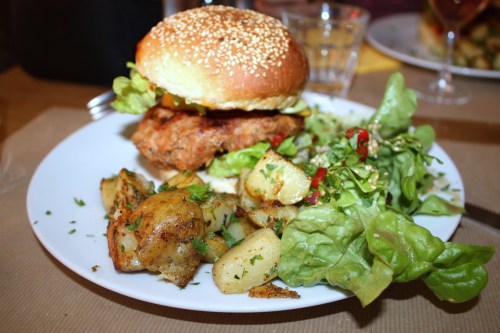 Le Veggie par contre…je ne suis pas encore bien initiée…c’est un mélange de tofu, céréales et tomates séchées…décevant …bourratif…Peut être que ceux qui ont l’habitude de manger des burgers végétariens le trouveront bon…moi je ne recommencerai pas, je préfère de TRES LOIN la tarte aux légumes .