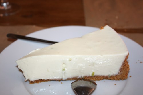 En dessert on s’est partagé un cheesecake. Là aussi il n’était pas trop dans mes goûts. Il y avait trop de zestes de citron et le cheese était trop léger , aérien,  un gâteau de fille au régime…Je les préfère plus crémeux, plus consistants !