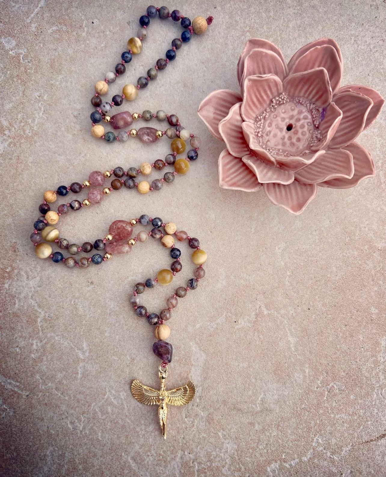 Parallèlement j ai aussi créé « Matières Précieuses » une boutique de bijoux énergétiques , thérapeutiques à base de pierres fines .
