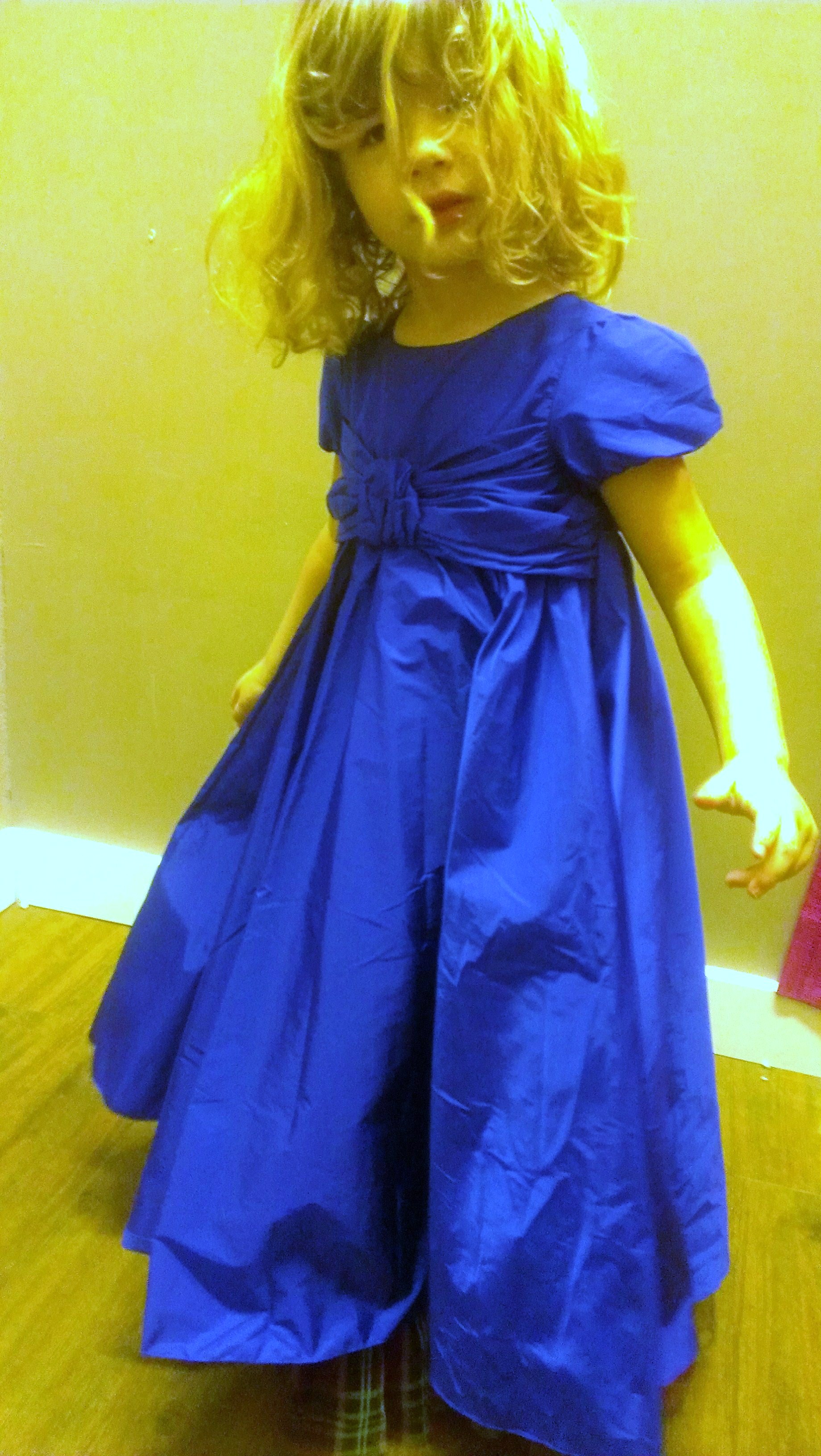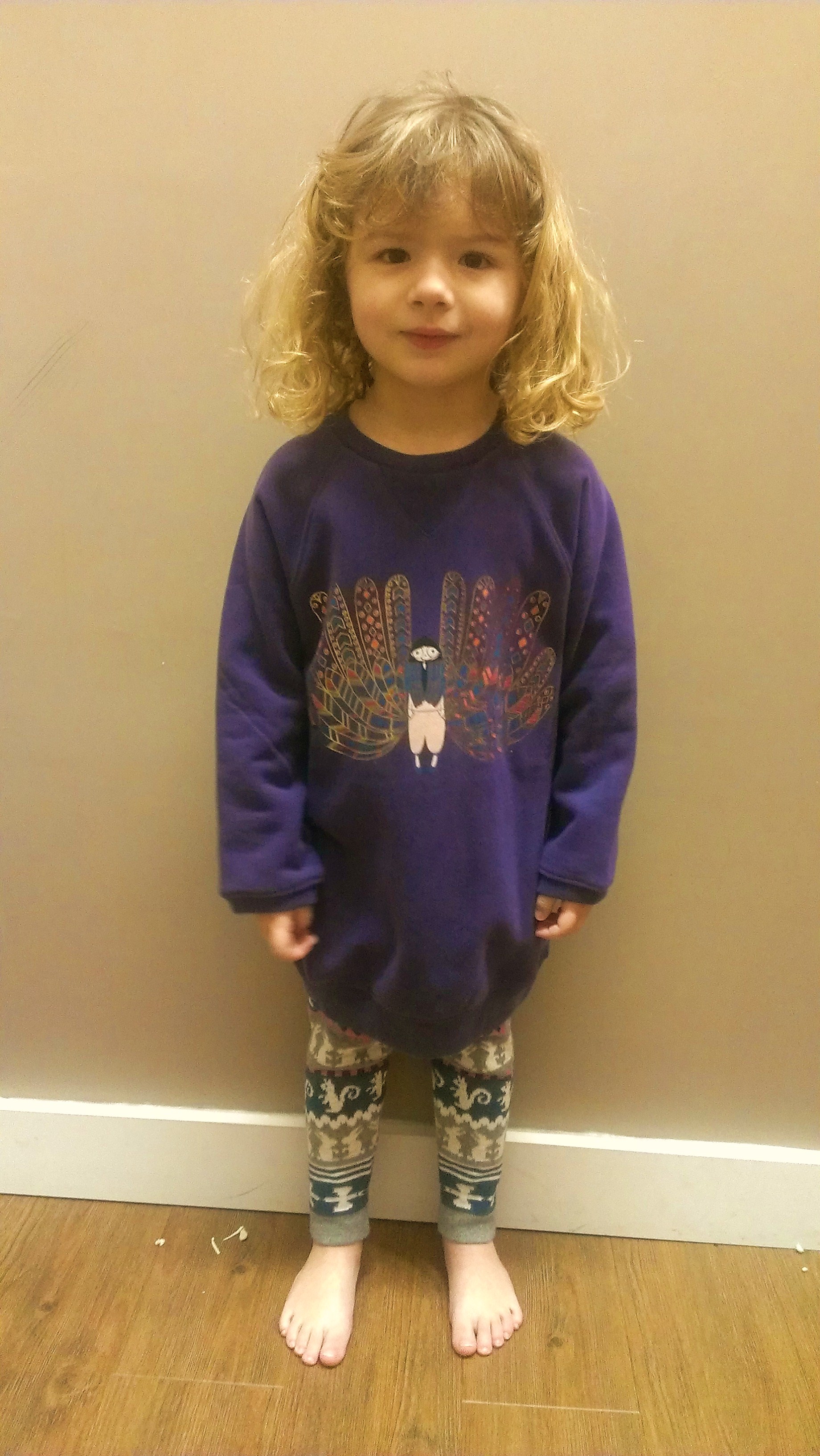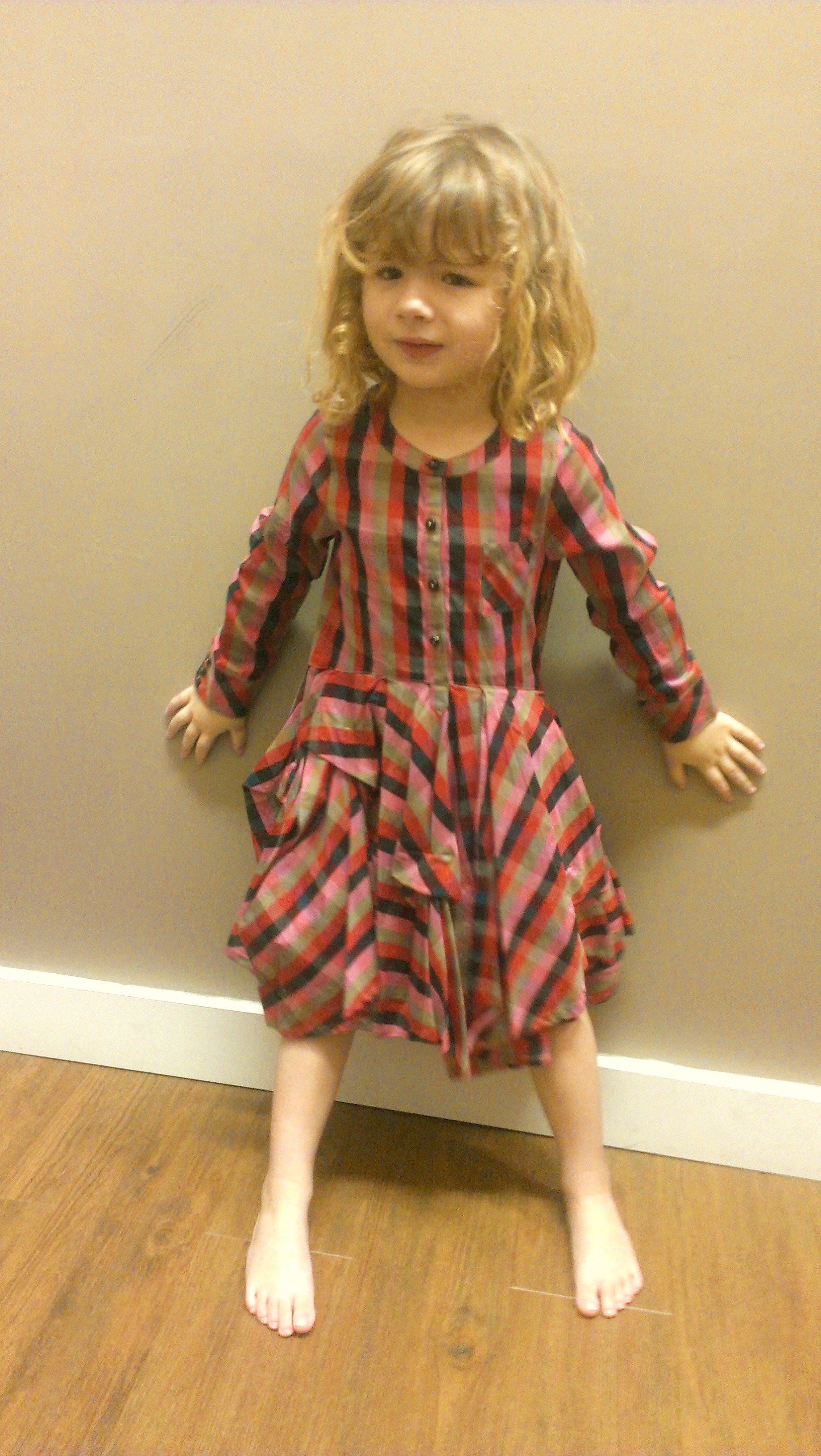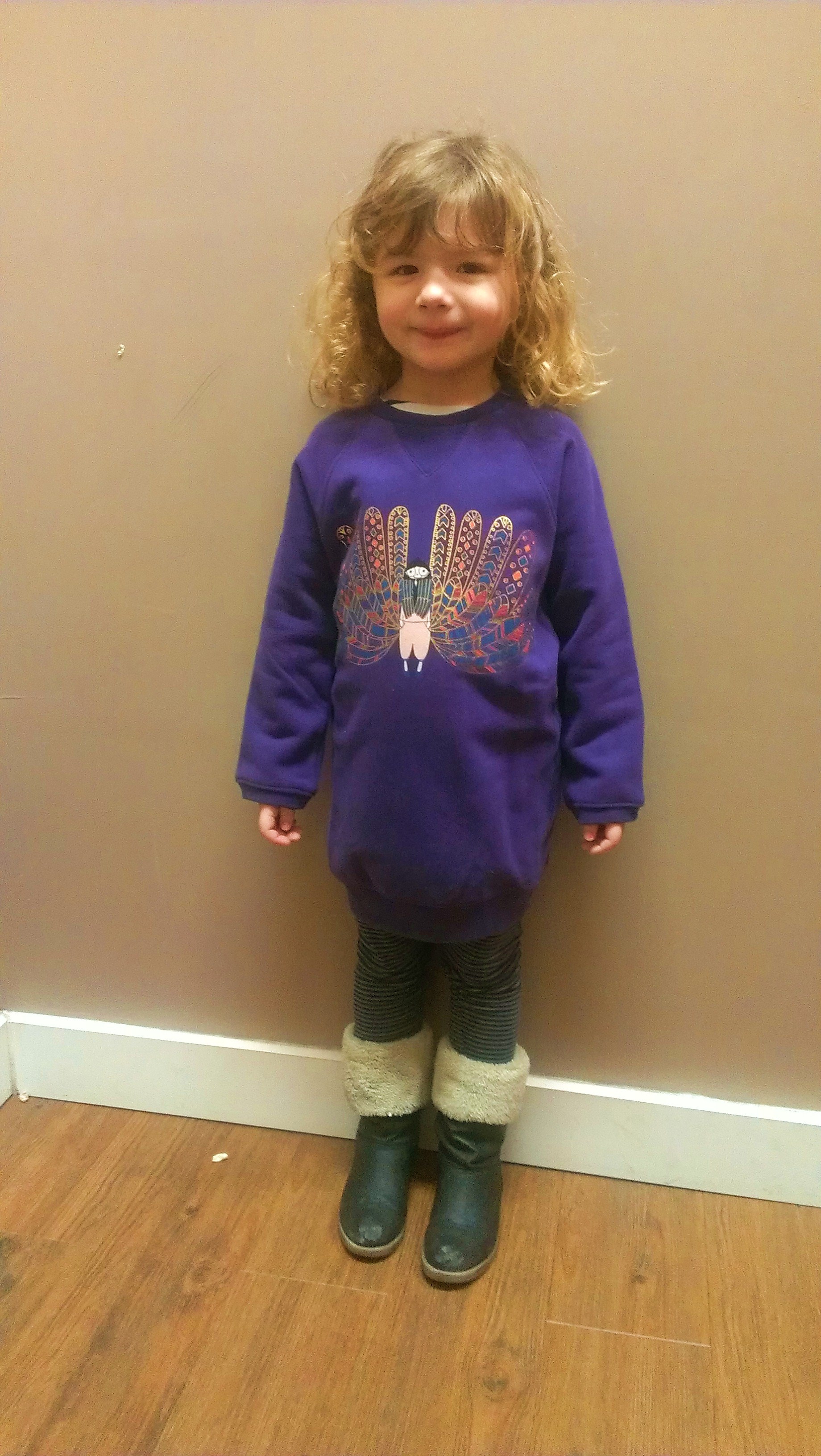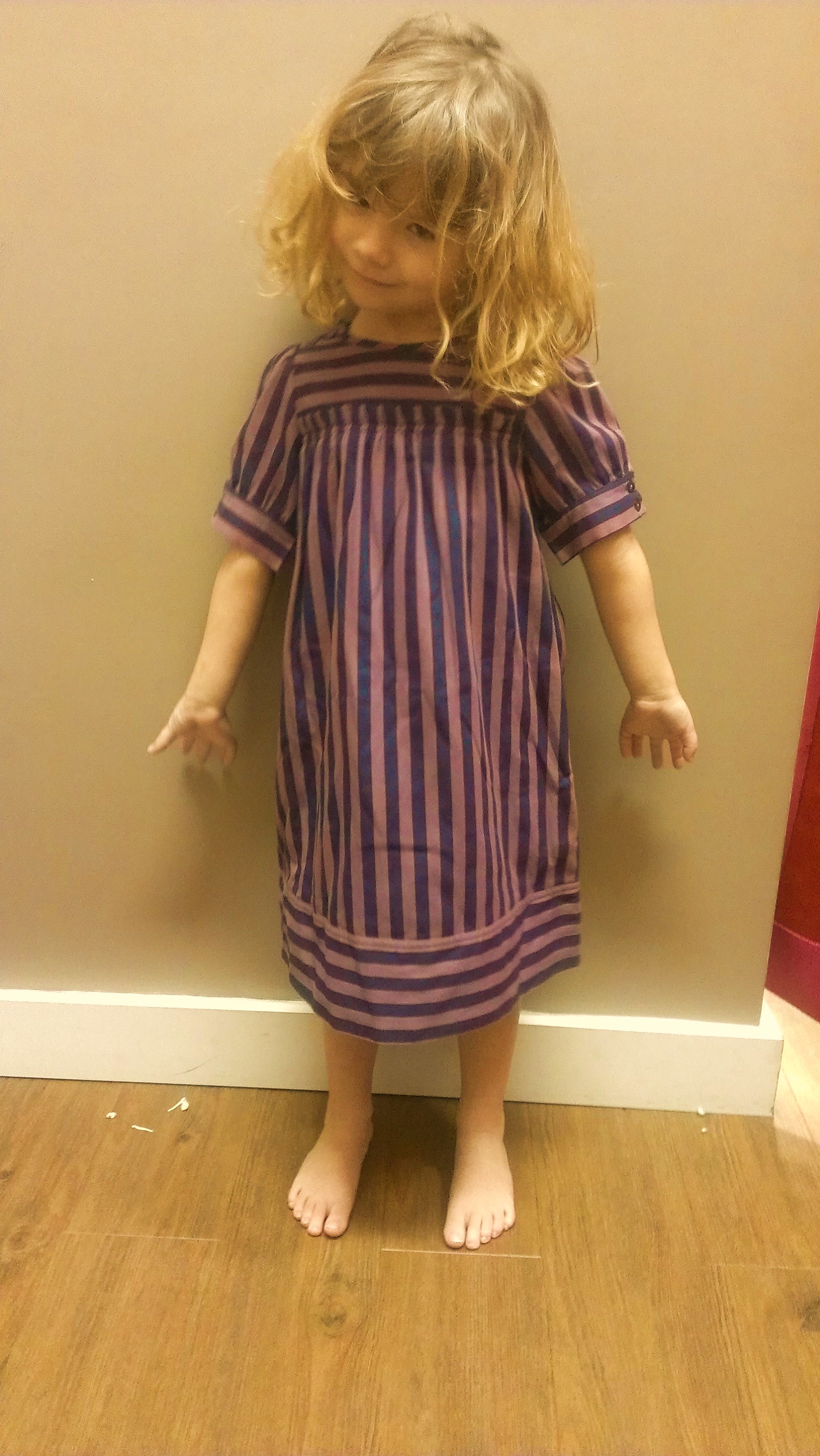 On a pris cette robe  en 6 ans , elle est un poil grande pour mon monstre aux plantes de 3 ans, mais elle est tellement jolie avec son faux sac imprimé  !